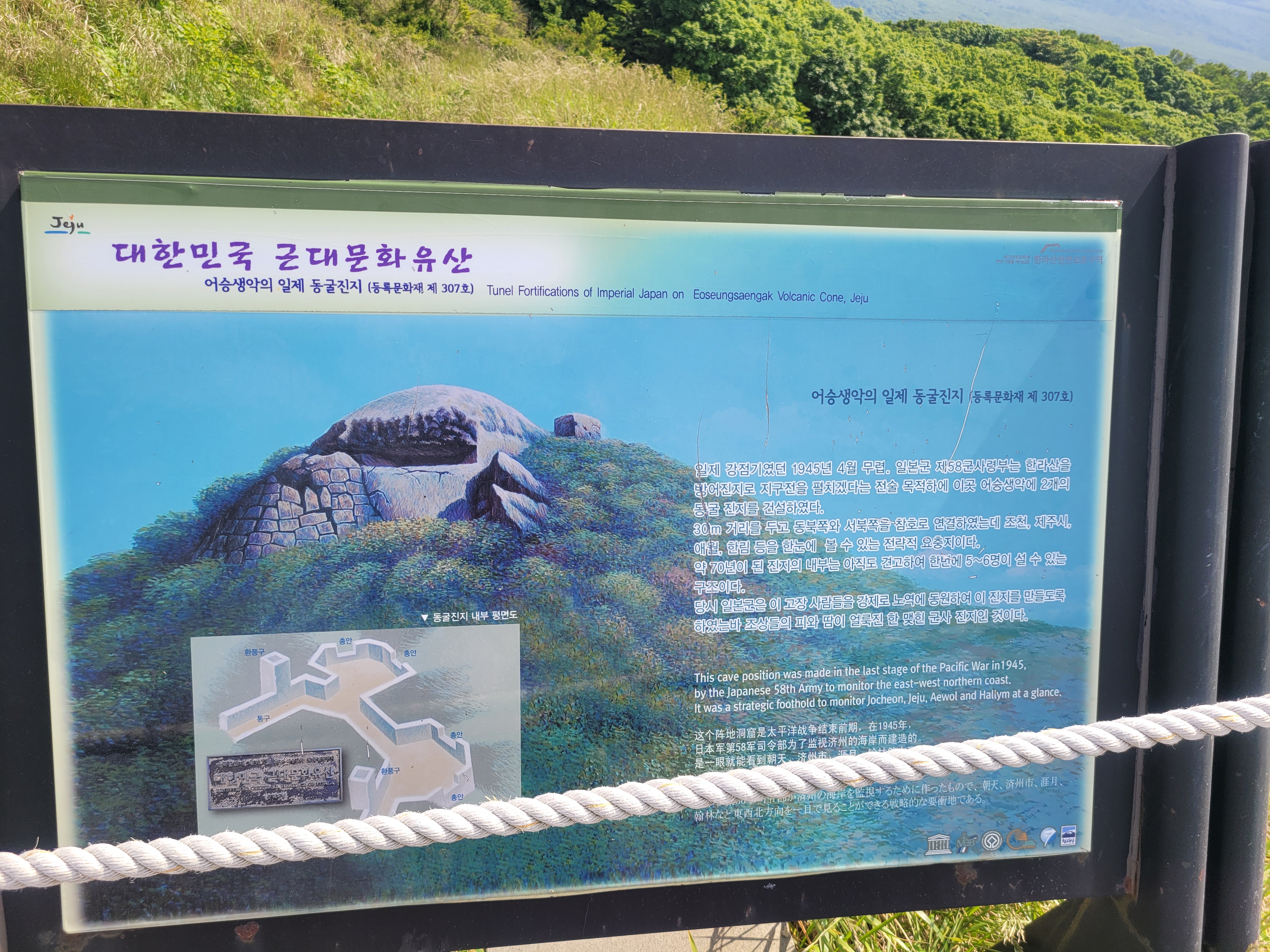 예전에 겨울에 아이젠 없이 올라서 고생했던 어승생악, 이번엔 야생화보며 천천히 걸어 오를 수 있어서 좋았습니다. 오를때는 산객이 없었는데 내려올때는 어리목에서 한라산 오르는 게 3시부터 통제 되니까 그때부터 어승생악으로 오르는 산객들이 많더군요. 어승생악은 어리목 탐방안내소에서 1시간이면 왕복 가능한 곳입니다. 짧게 오르지만, 한라산을 마주보는 기특한 산행지이지요. 어승생악 자체에 일제 포진지 벙커가 있었대요. 못된것들..우리의 아름다운 산하를 ..아직도 포진지 형태가 남아 있습니다. 제주시를 내려다 보면 오름들과 바다가 보입니다.
